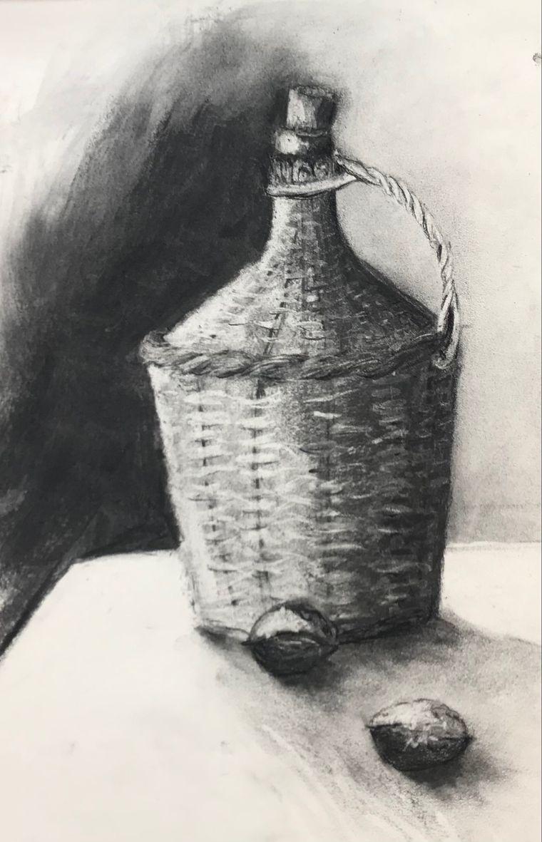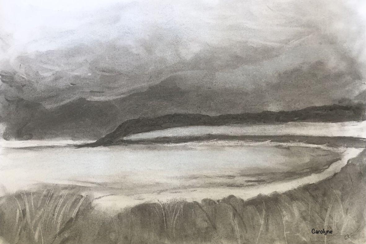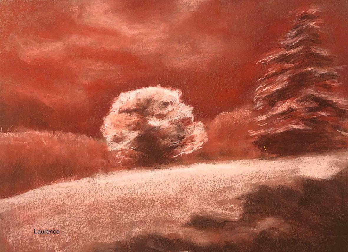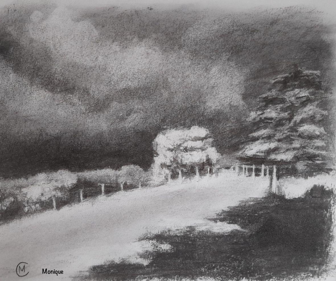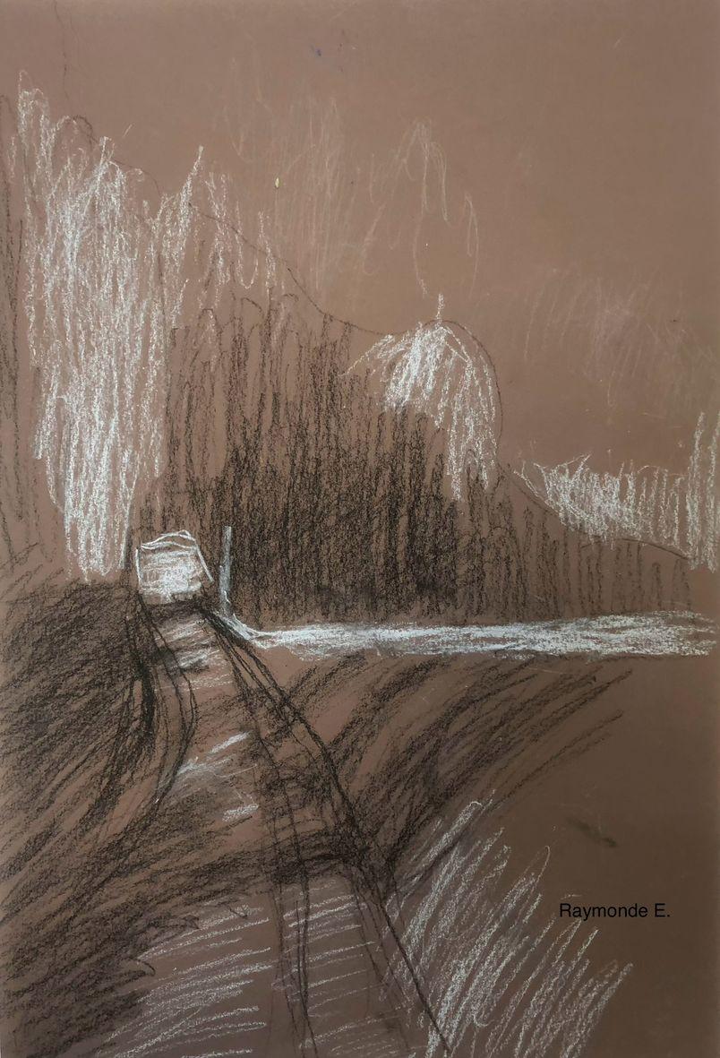 Deuxième module : paysage autour de l'ombre et de la lumière avec une préparation du dessin à la pierre noire et au crayon pastel blanc
