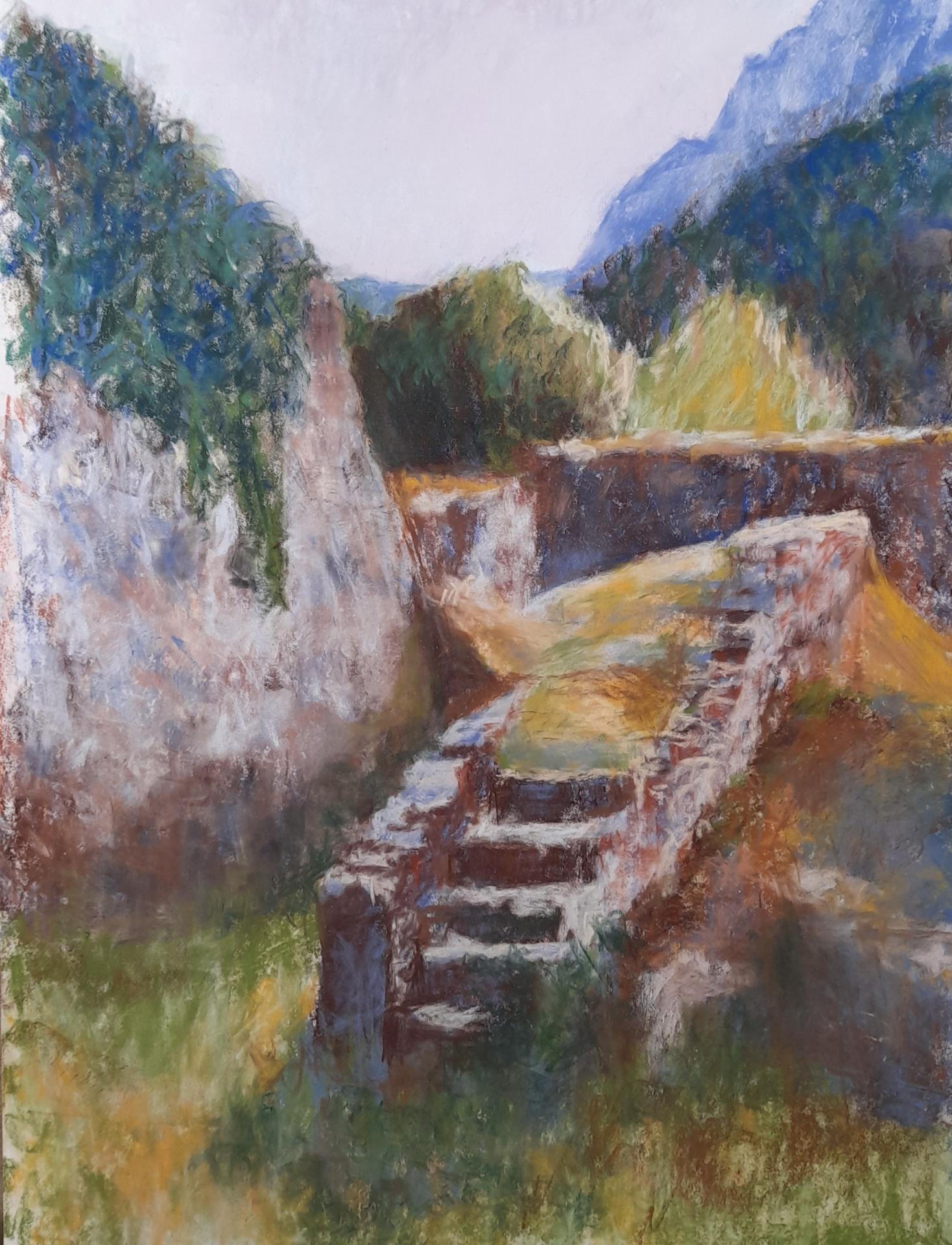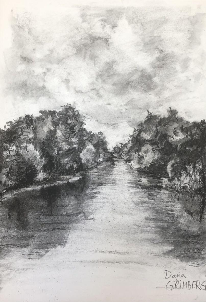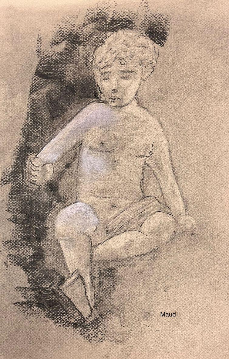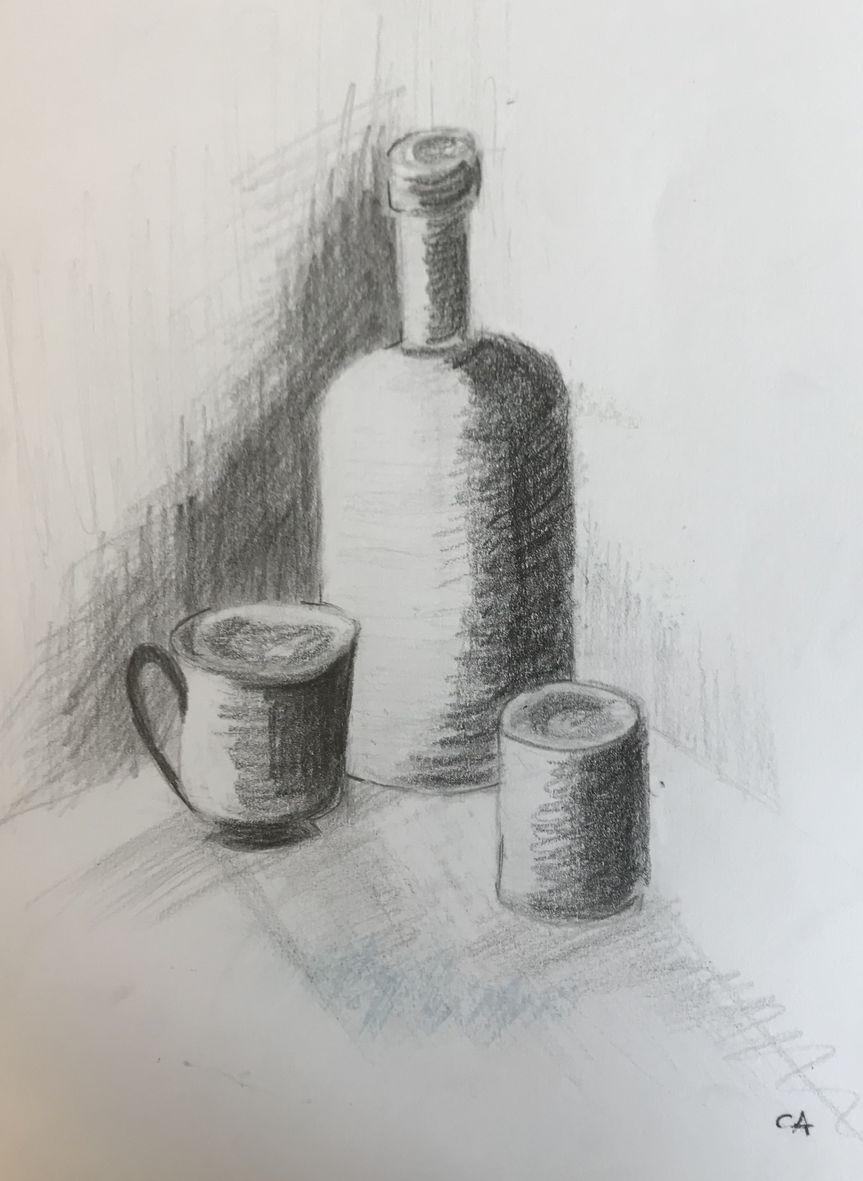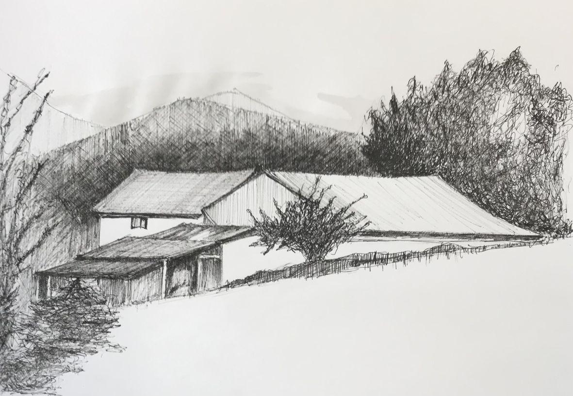 Deuxième module : paysage autour de l'ombre et de la lumière avec une préparation du dessin à la pierre noire et au crayon pastel blanc