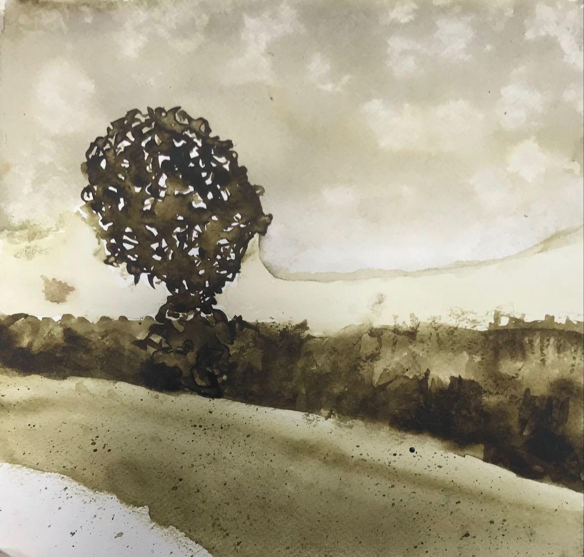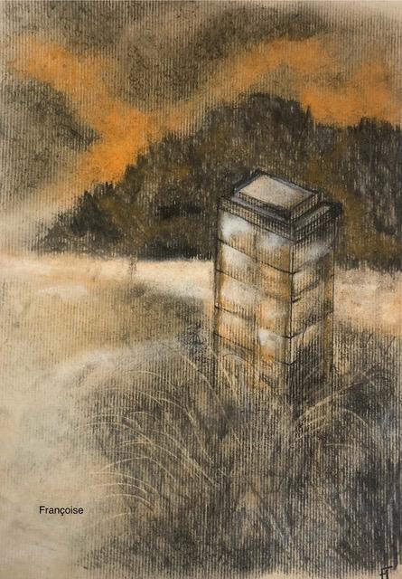 Mélange de fusain mouillé, pastel, encre, aquarelle, etc...