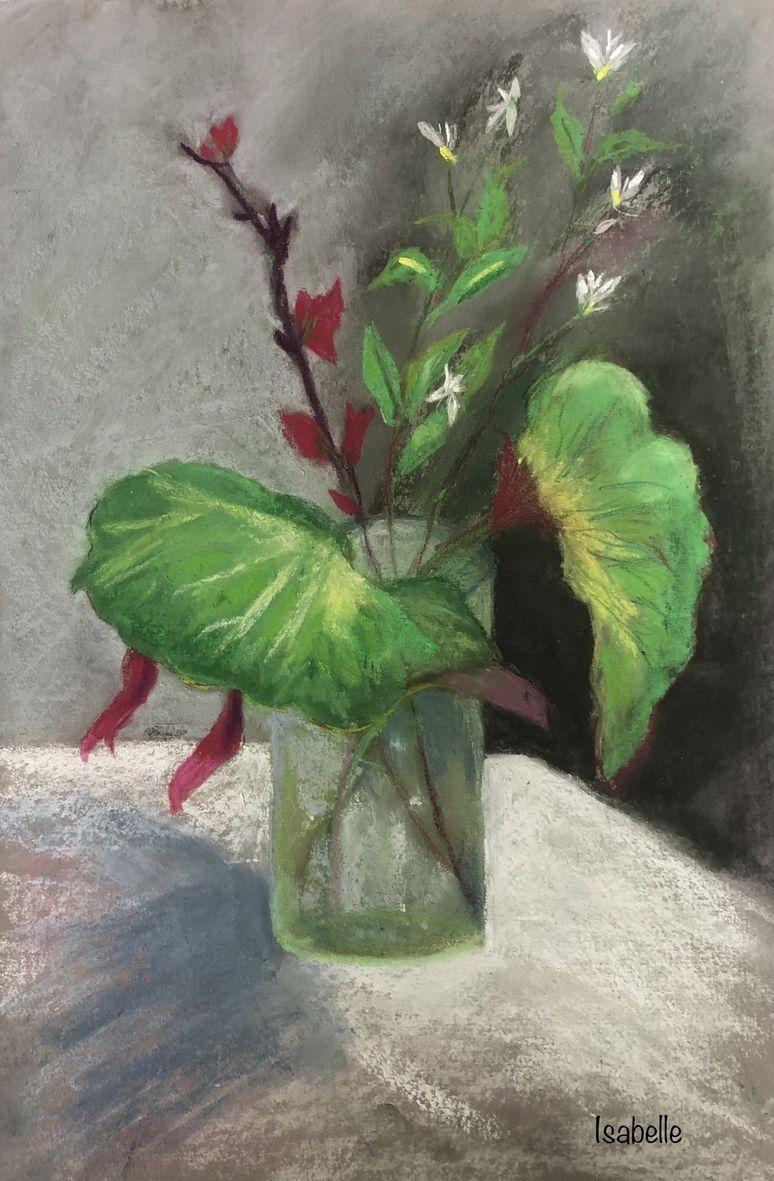 Premier module : préparation de papier aquarelle avec du pastel mouillé, une version en monochrome et une version avec une couleur et sa complémentaire